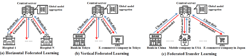 Federated learning is not a one-size-fits-all. It relies on the data distribution of institutions. At times, various groups gather similar information about different users, at times they gather distinct information about comparable users, and at times even users and features overlap partially. For addressing all these scenarios, federated learning is specifically categorized into three categories: horizontal, vertical, and transfer learning.