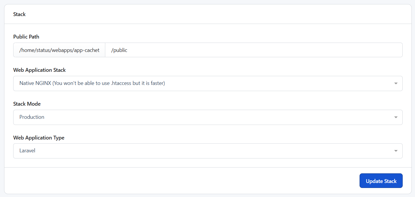 Next, create a new, empty Web Application in RunCloud. This will be the home for your Cachet installation.
