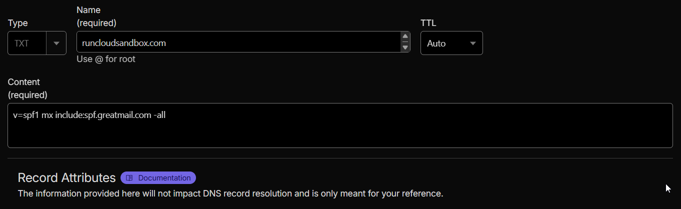 - SPF (Sender Policy Framework) Record: Add a TXT record authorizing Greatmail’s servers to send mail on your behalf. This helps prevent spoofing and improves deliverability.