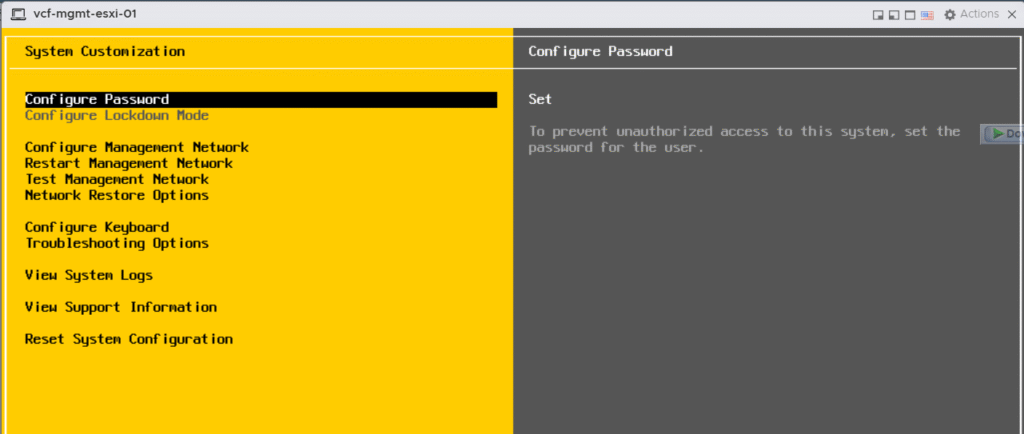 In the below steps, I will guide you through the preparation of the ESX hosts. These steps will have to be repeated for all ESX hosts participating in the VCF bring up.