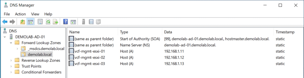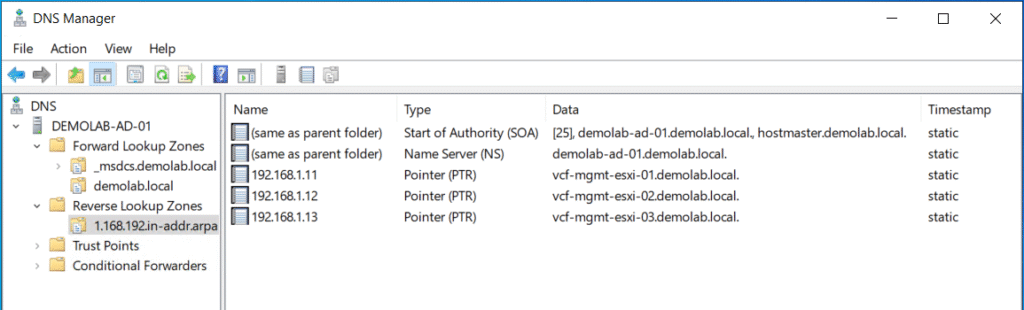 Step 5: Add Forward/Reverse DNS records for ESX Hosts