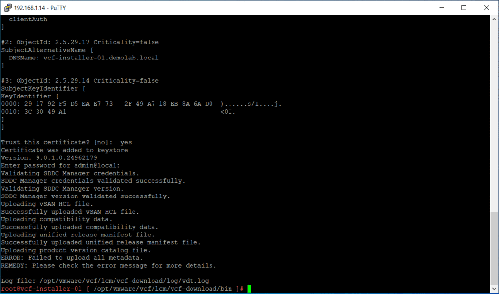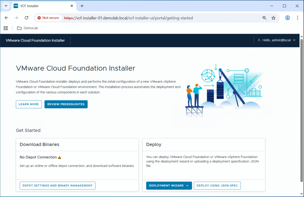 Replace FQDN by the fully qualified domain name of your VCF installer appliance (vcf-installer-01.demolab.local in my case).