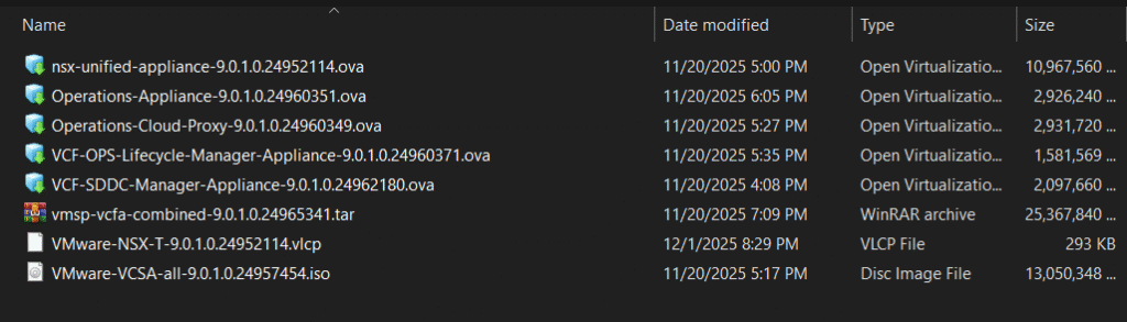 https://support.broadcom.com/group/ecx/productfiles?displayGroup=VMware%20Cloud%20Foundation%209&release=9.0.1.0&os=&servicePk=534266&language=EN&groupId=534924&viewGroup=true