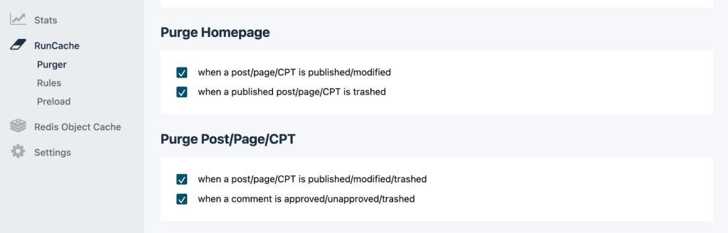 If you find yourself constantly modifying plugin settings, consider RunCache. It combines page, object, and edge caching into a single dashboard, which eliminates the need for complex plugins that don’t effectively communicate with your server.
